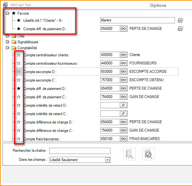 Pour ajouter une option aux favoris, il suffit de cliquer sur l'étoile située à sa gauche. Celle-ci remonte alors automatiquement parmi le premier bloc d'options qui regroupe désormais les favoris.