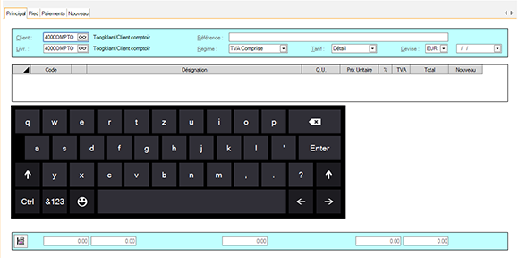 Le clavier visuel est désormais mis à disposition dans les écrans des documents de la gestion commerciale (et également dans les actions du CRM).