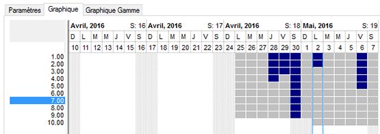 Par un simple « cliquer-glisser » sur ce graphique, vous pouvez intervertir les réservations des ressources. Un jeu de couleurs vous permet de connaître l’état/le statut de chaque réservation.