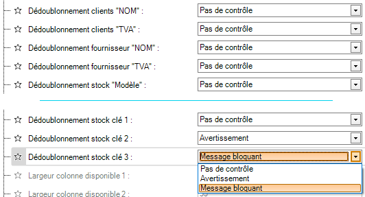 - Pour les fiches articles : s'il y a des doublons dans les noms et les références (clé 1, clé 2 et clé 3).