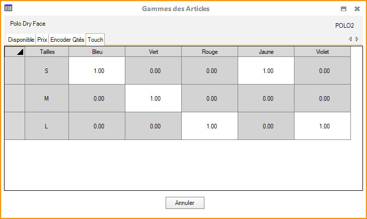 Pour rappel, un article "à gammes" est un article qui existe en plusieurs variantes, par exemple en plusieurs tailles et couleurs.