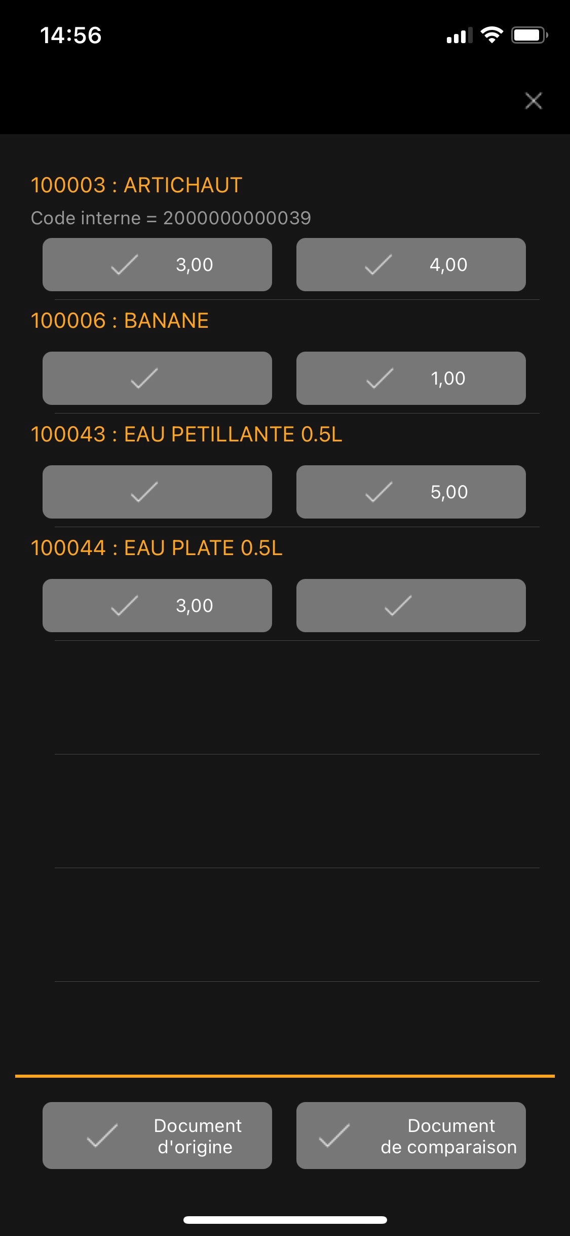 Confrontation entre les lignes du document d'origine et les lignes des articles scannés. Choix des quantités à conserver. (4)