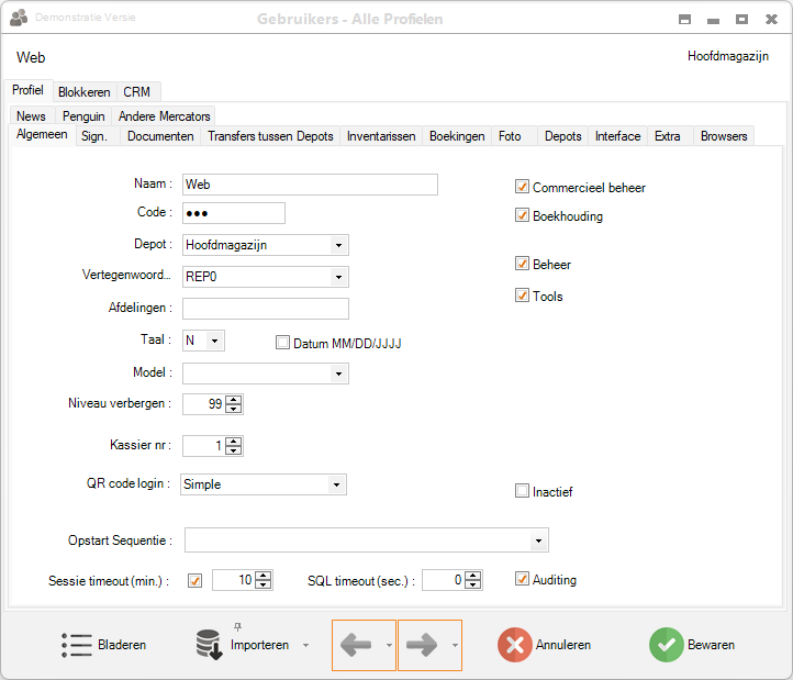 In het menu selecteert u "Tools > Gebruikers > Alle Profielen" of "Actieve Profielen".