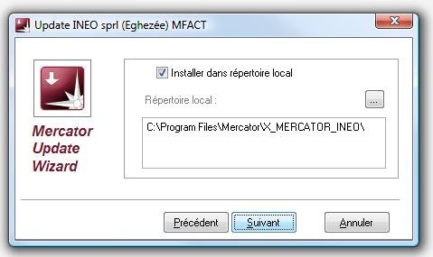 De wizard stelt standaard voor om deze lokale resources te installeren in een subdirectory C:\Program Files\Mercator. De naam van deze subdirectory is gebaseerd op de hoofddirectory van Mercator. Aldus, als op een zelfde pc meerdere Mercator-versies worden gebruikt, zullen hun lokale resources altijd geïnstalleerd zijn in afzonderlijke directories. De directory opgegeven in de zone "Lokale directory" zal automatisch door de wizard worden gecreëerd, als die niet bestaat. Via de knop ... kan een bestaande directory worden geselecteerd of kan er een nieuwe worden gecreëerd. Opgelet: als de UAC (controle van de gebruikersaccount) op uw werkpost is geactiveerd, mag u geen subdirectory van C:\Program Files\ gebruiken, want deze map is standaard beveiligd tegen schrijven. U moet dan een andere directory kiezen op een lokale schijf (bijvoorbeeld C:\Mercator\).