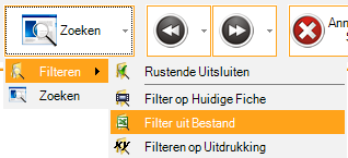 Met Mercator 10.10 of later kunt u een filter toepassen in een informatiebestand op basis van een Excel- of XML-bestand. Deze functionaliteit is toegankelijk via deze knop :