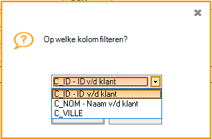 Dit bestand moet ten minste één kolom bevatten die overeenkomt met één van de kolommen in de basistabel van het informatiebestand. Indien het bestand meer dan één kolom bevat, kunt u de kolom selecteren die voor het filteren zal worden gebruikt. Het filteren gebeurt altijd op één enkele kolom, ook al bevat het bestand er meerdere.