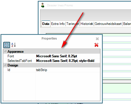 - SelectedTabFont: lettertype van de tekens van het geselecteerde tabblad