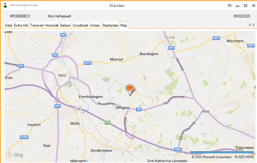 Met Mercator 10.7 of hoger kunt u kaarten weergeven in de verschillende aanpasbare schermen (signalitieken , acties, documenten van het Commercieel Beheer, ...)
