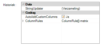 Om opwaartse compatibiliteit met reeds bestaande instellingen te garanderen, moet u de optie AutoAddCustomColumns activeren in dit rooster. Dit laat Mercator weten of gepersonaliseerde kolommen mogen automatisch toegevoegd worden.