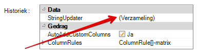 Hiervoor moet men de eigenschap StringUpdater bewerken en volgende wijzigingen uitvoeren: