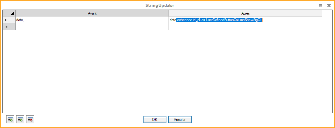 Het voorbeeld toont hoe men een kolom kan toevoegen met een knop die bij activatie de klantenfiche zal openen.