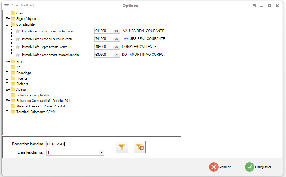 Certains comptes par défaut doivent être paramétrés dans "Outils > Options" (ID = CPTA_AMO).