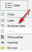 Mercator 12.0 ou ultérieur permet de visualiser les écritures comptables depuis les écrans des virements et des domiciliations bancaires. Pour cela, il faut utiliser l'élément "Ecritures Liées" de ce bouton situé dans la partie inférieure gauche de l'écran.