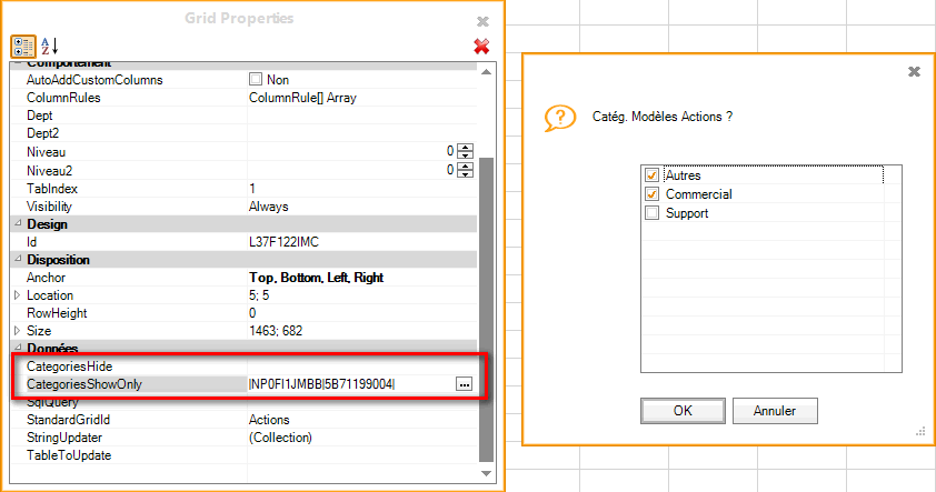 - CategoriesShowOnly : alleen de acties van de gespecificeerde categorieën worden weergegeven