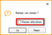 Als de hieronder gedocumenteerde optie JA is, wordt dit dialoogvenster nooit weergegeven. In dit geval is het mogelijk om een opnieuw afdrukken per code aan te vragen.
