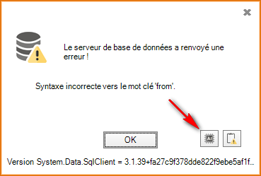 A ces deux endroits de Mercator, lors d'une erreur SQL, un bouton supplémentaire est présent dans la boîte de dialogue affichant l'erreur. Il permet d'envoyer directement la requête SQL ainsi que le message d'erreur vers la fenêtre de chat.