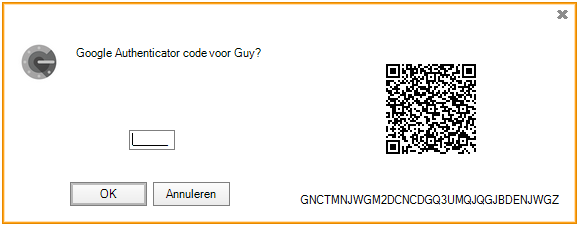 De gebruiker moet dan de QR-code inscannen met behulp van de Google Authenticator applicatie op zijn smartphone, en de geretourneerde pincode invoeren in Mercator. De volgende keren dat je inlogt, volstaat het om de PIN-code in te voeren, maar de QR-code zal niet meer worden weergegeven.