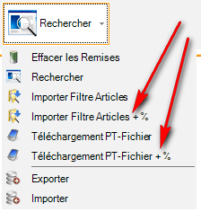 Le paramétrage illustré ici montre comment, après un import de lignes dans l'écran "Outils / Remises / Clients", fixer la remise en une fois, pour toutes les lignes importées. Cet import peut être effectué