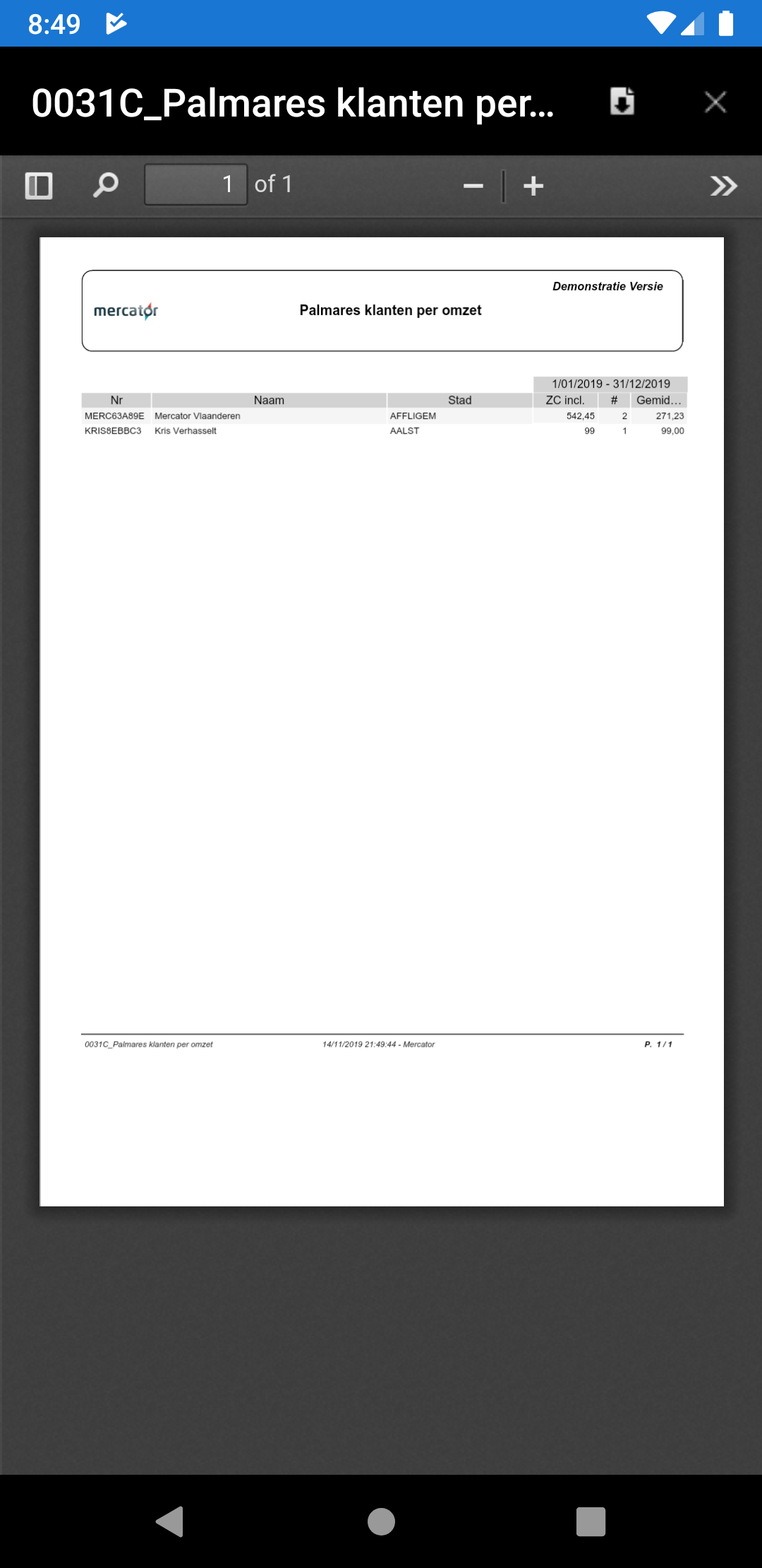 Deze bundel is gekoppeld aan het rapport 0031C Palmares klanten per zakencijfer in de stap nr. 1. Het Commercieel Beheer van Mercator is vereist.