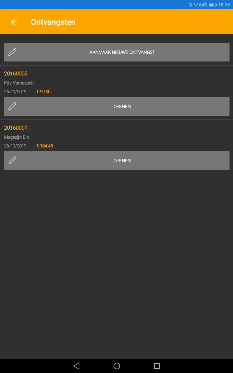 Een bundel van het type 'Lijst' laat toe om een nieuwe ontvangst te maken of een lijst met de laatste geregistreerde ontvangsten te tonen om deze eventueel te wijzigen indien nodig. De instelling van deze bundel is beschikbaar in het bestand Ontvangsten.pngb. In ons voorbeeld is de volgorde gebruikt "Ontv".