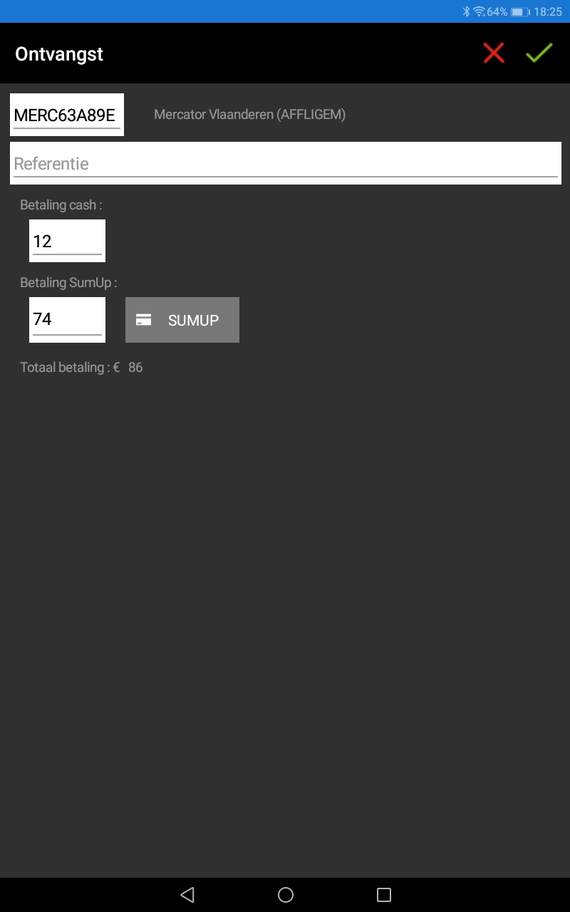 - hetzij via bankkaart, via de betaal terminal SumUp® (in onze parametrering, de betaalwijze nr. 11),