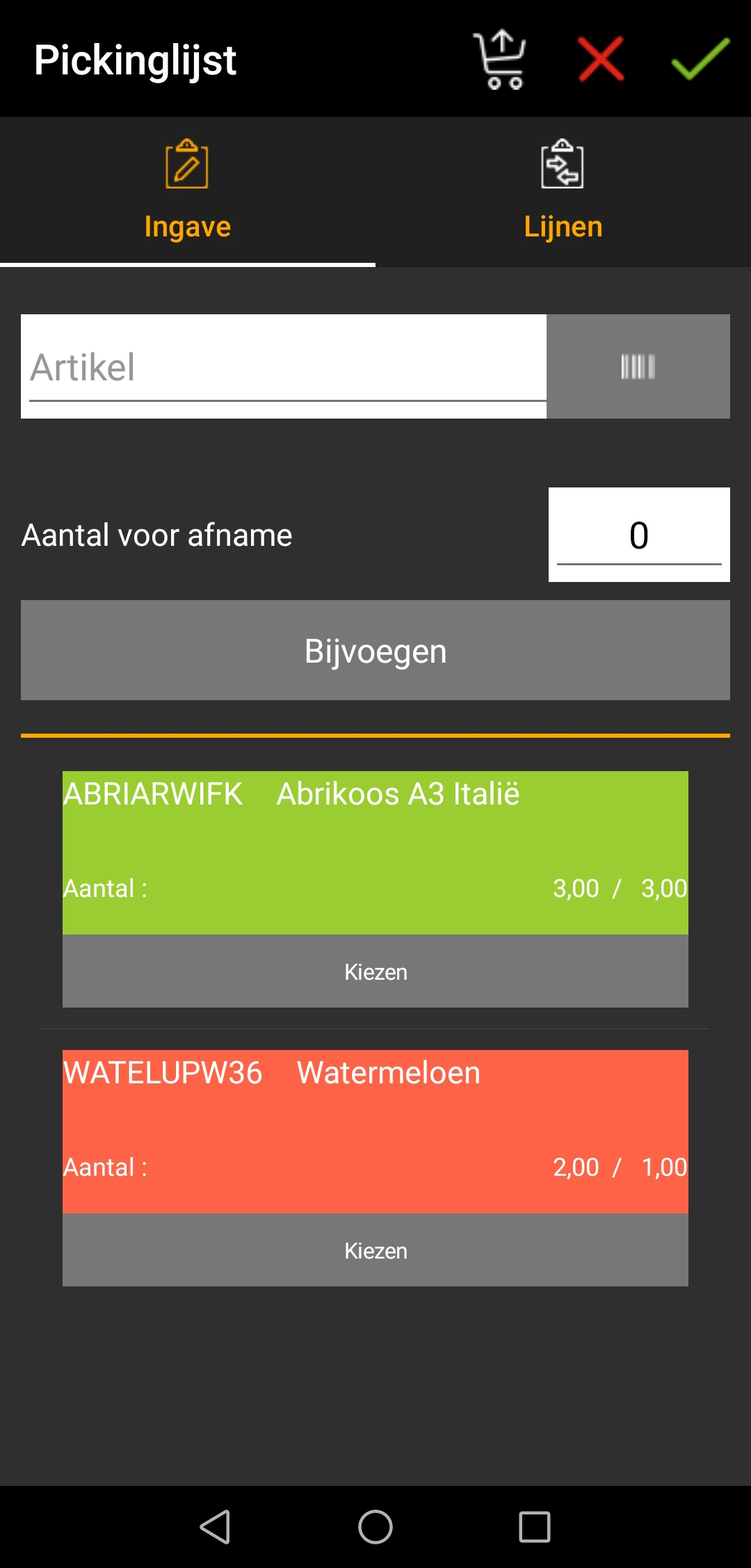 - De gepickte hoeveelheden worden opgenomen in de lijst met items en worden dynamisch aangepast aan de huidige picking.
