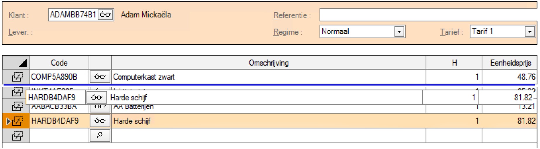 Binnen uw verkoop- of aankoopdocument kunt u de volgorde van de lijnen kiezen door ze te verplaatsen via drag&drop.