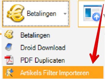 - Klik op de sub-knop "Artikels Filter Importeren". Alle artikels die in het filter zijn opgenomen worden vervolgens in het document geïmporteerd.