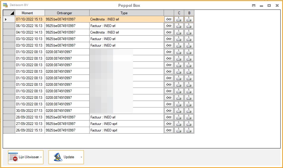 Met een nieuw menu-item "Beheer > PEPPOL Box" kunt u uw PEPPOL "mailbox" raadplegen. Hier vindt u de ontvangstbevestigingen van zendingen en de ontvangen facturen. Facturen en creditnota's kunnen rechtstreeks worden geïmporteerd in het commercieel beheer of in de boekhouding.