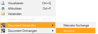 Voor uw klanten die PEPPOL gebruiken, kunt u via “Bestand > Document verzenden" de optie "Via eInvoice" kiezen.